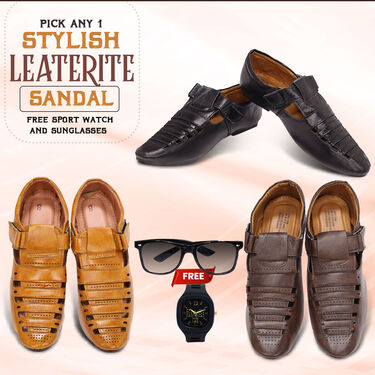 Pick Any 1 Stylish Leatherite Sandals + Free Watch And Sunglasses (SW76)