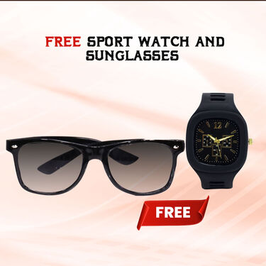 Elevate your style with this versatile combo featuring a stylish leatherite sandal, sporty watch, and aviator sunglasses. The sandal boasts PU upper material and a slip-resistant sole for a confident stride. Pair it with the sporty watch, crafted with stainless steel case and rubber strap, for a trendy look. Complete your ensemble with the aviator sunglasses, adding a touch of sophistication to your outfit. Whether for casual outings or daily wear, this combo offers comfort, style, and functionality. Perfect for those who value quality and fashion at an unbeatable price