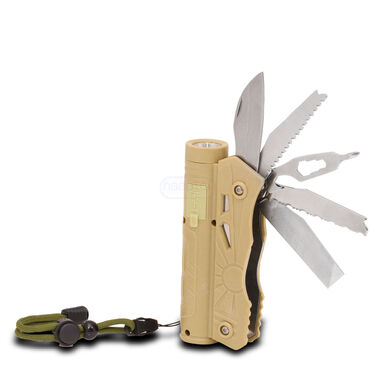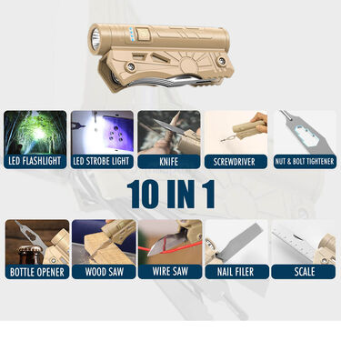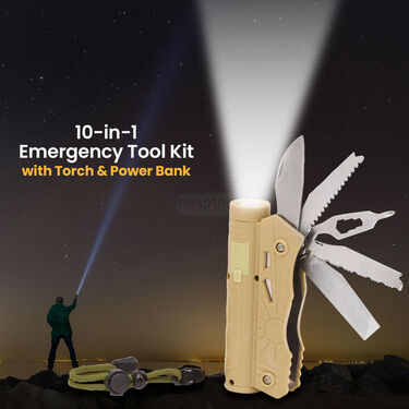 Experience versatility and convenience with the portable multifunction 10 in 1 tool lamp. Crafted from stainless steel with a sleek matte black finish, this tool combines essential features for various tasks. From LED flashlight and strobe light to bottle opener, knife, file, scissors, Phillips screwdriver, hex keys, wire cutter, and saw, it's your go-to companion for any situation. With an inbuilt emergency power bank, it ensures you stay powered up on the go. Perfect for households, shopkeepers, and outdoor enthusiasts, this tool offers compactness, portability, and peace of mind in one sleek package