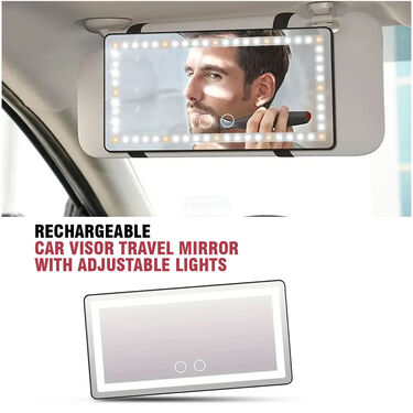 STAY STYLISH, STAY SAFE - Rechargeable Car Visor Travel Mirror With Adjustable Lights (RCVTM)