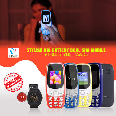 The I Kall K3310 Feature Phone, paired with a free Stylish Watch, is a versatile choice for users seeking functionality and style. Its 1.8" LCD screen provides a vibrant display, complemented by a robust 1000mAh battery offering up to 10 days of standby time and 8 hours of talk time. With dual SIM support, multiple language options, and entertainment features like Wireless FM, Music Player, and Video Player, this phone caters to diverse preferences. The sleek design, extended battery life, and multimedia capabilities make it an attractive option for those prioritizing reliability and a touch of elegance