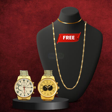 2 Golden Chain + Bracelet + Ring + Free Watch (2GCBRW19)